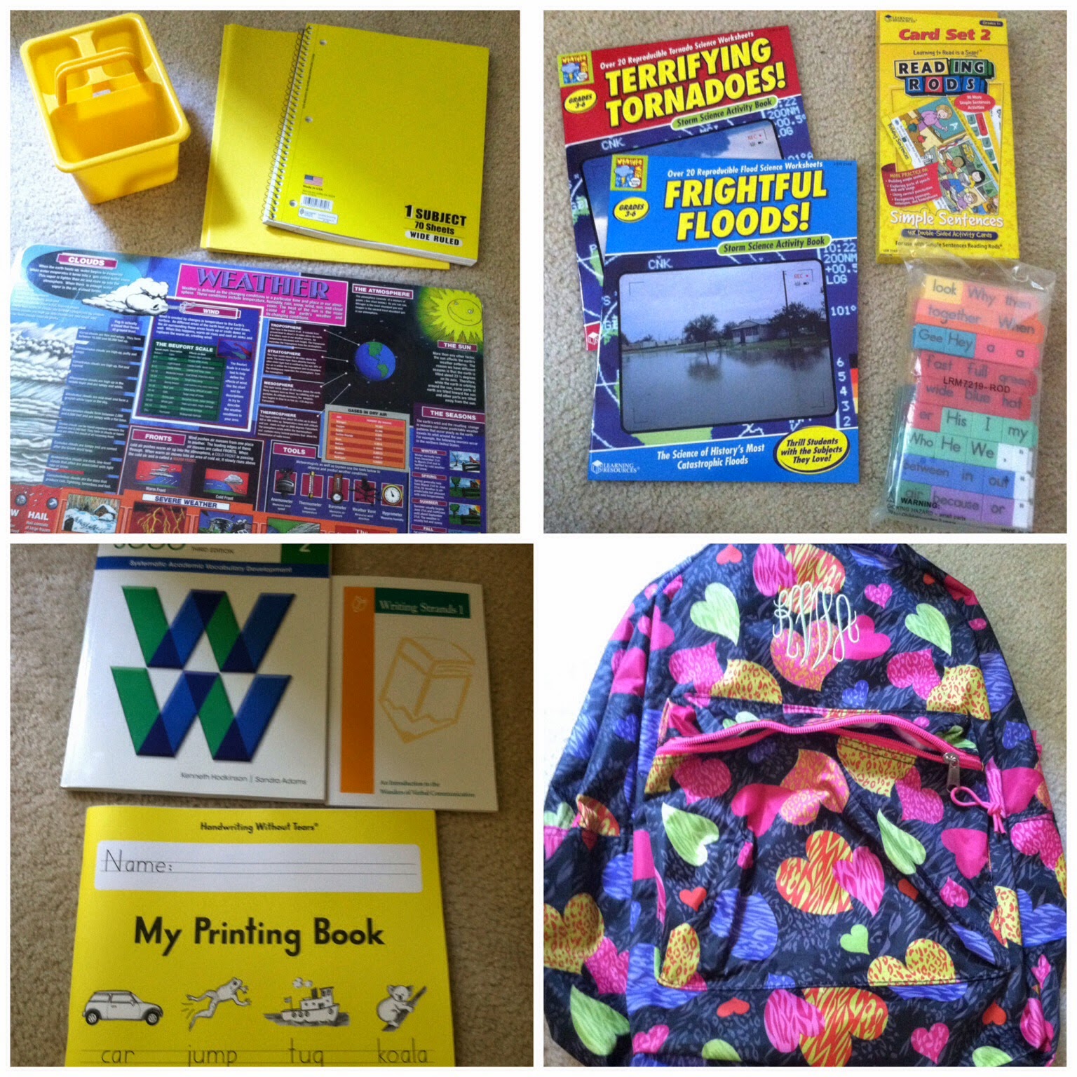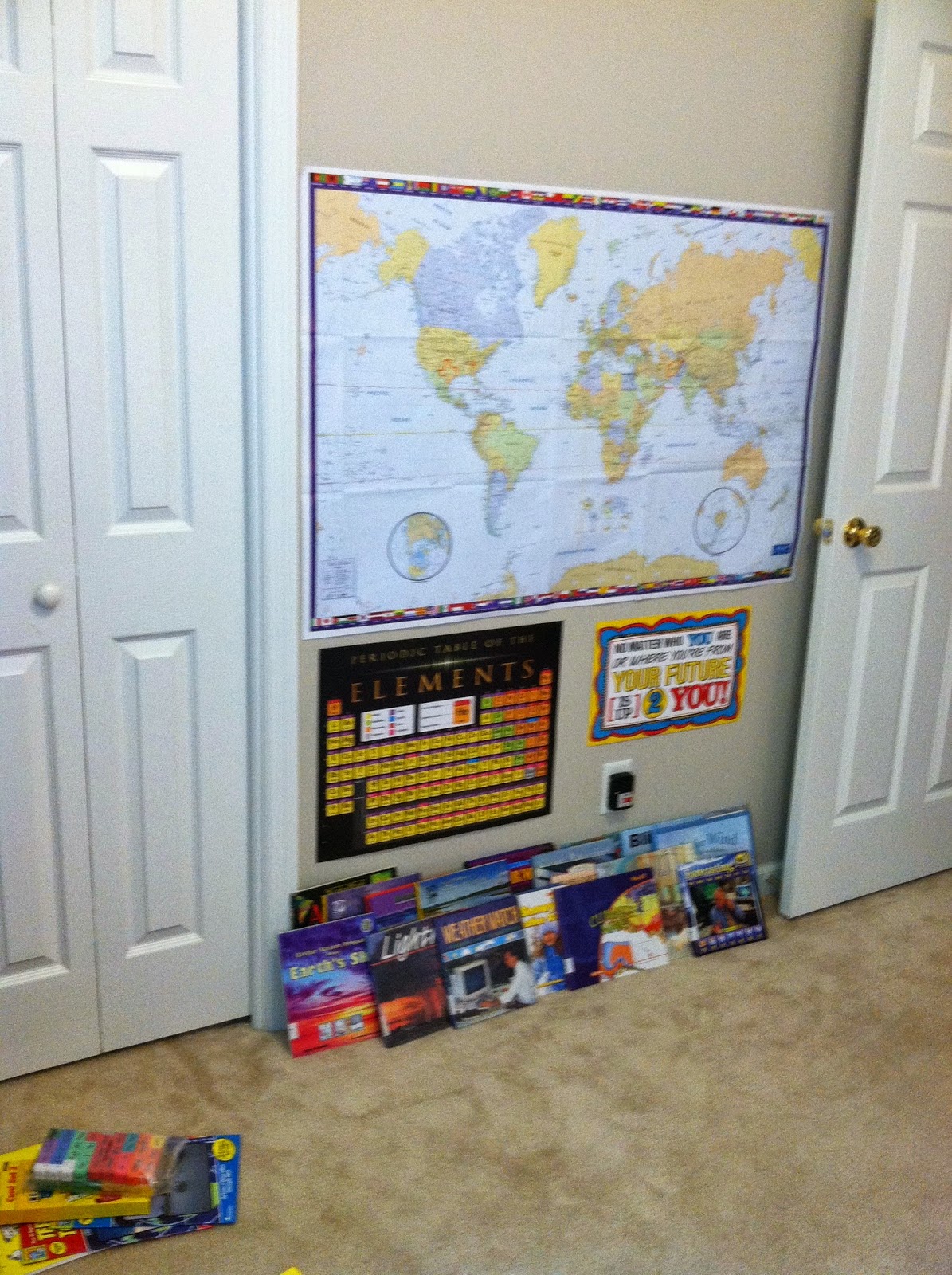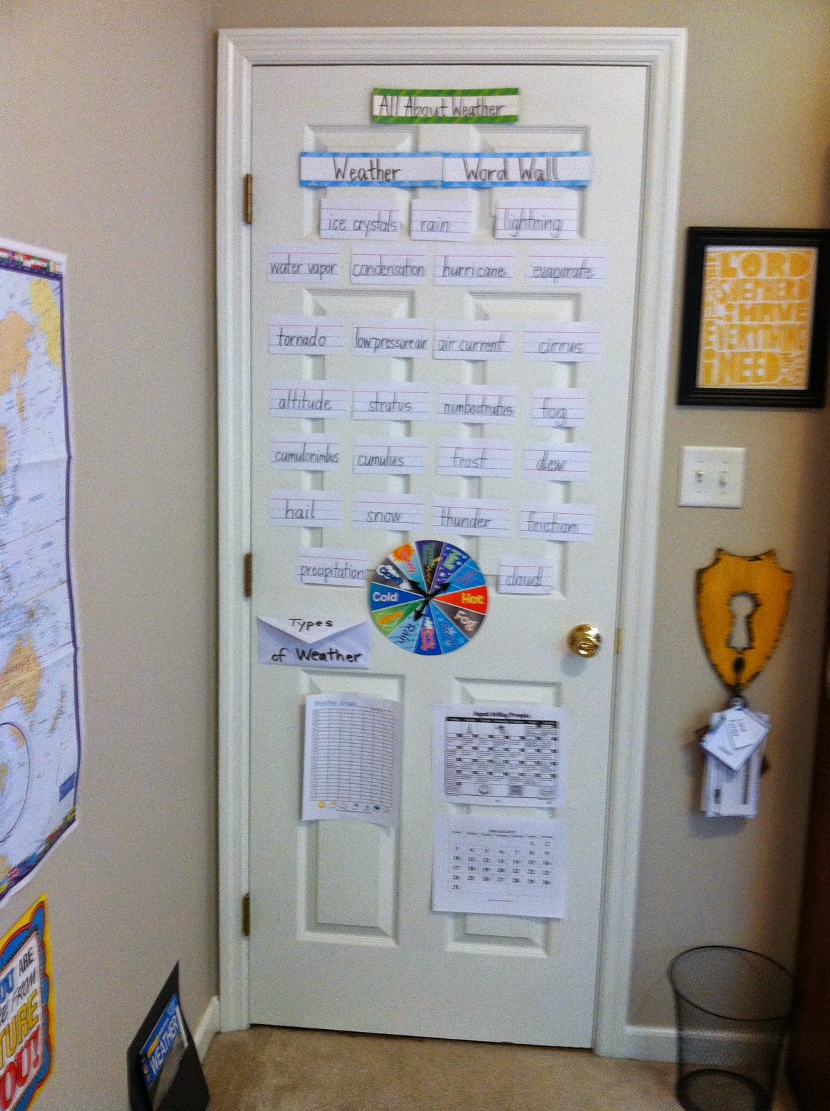 Our first science unit is a study on climates and weather. I’ve already got a few things up on the back of the door and some library materials hoarded collected.