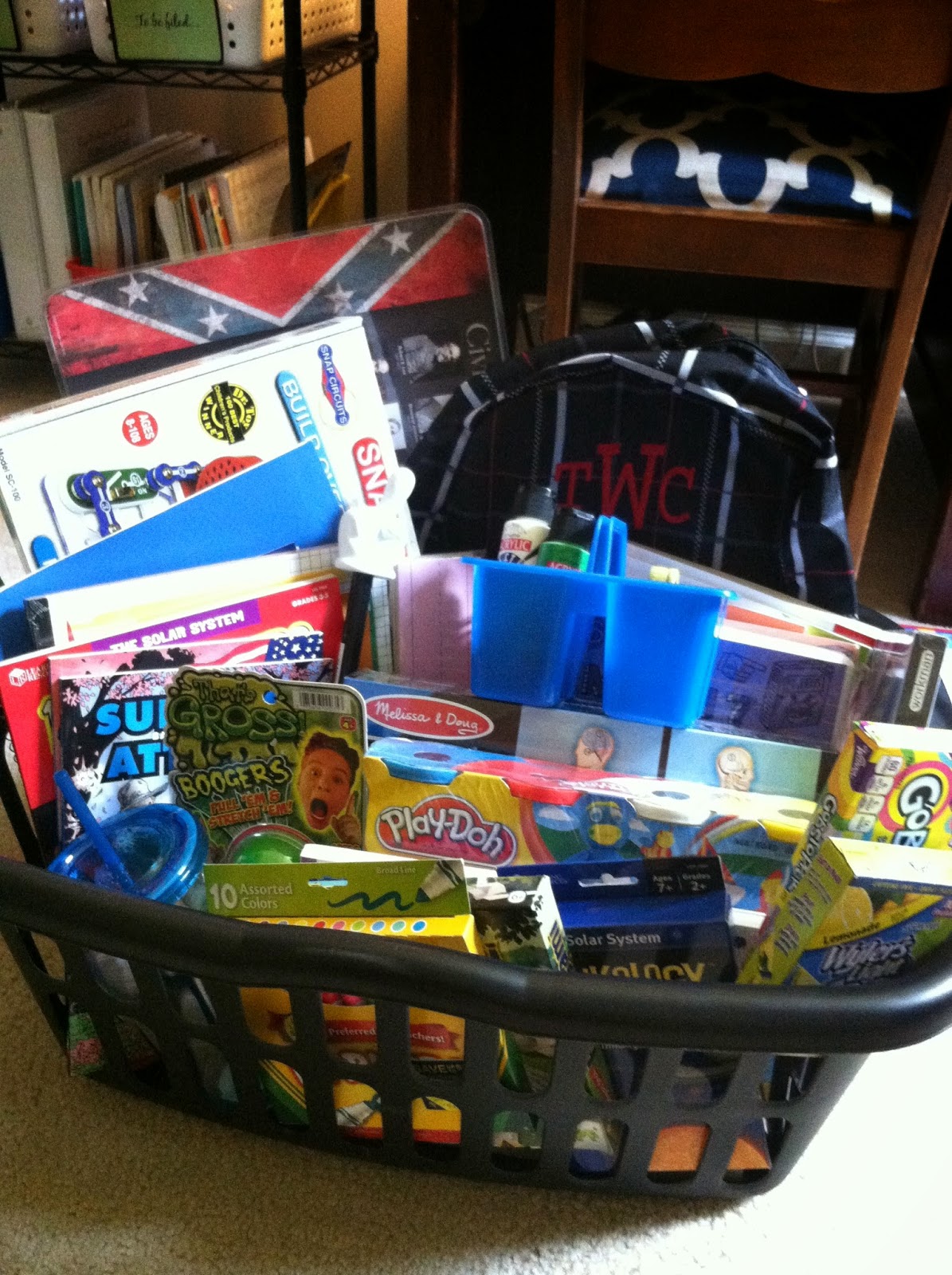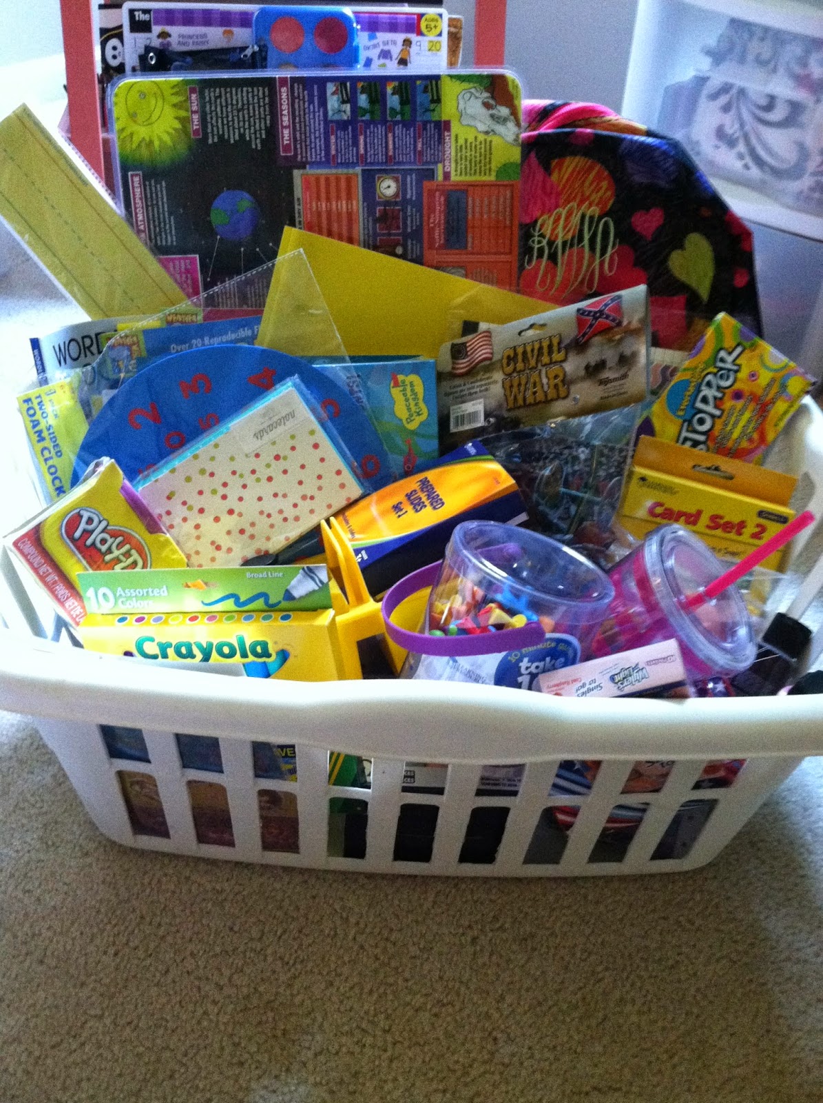 Last year, I was limping across the finish line of the deployment and we ended up starting school in July to accommodate fall travel plans upon Ryan’s return. You can see pictures of our Back-to-School Baskets for 2013 here. It was the best of times and it was the worst of times.