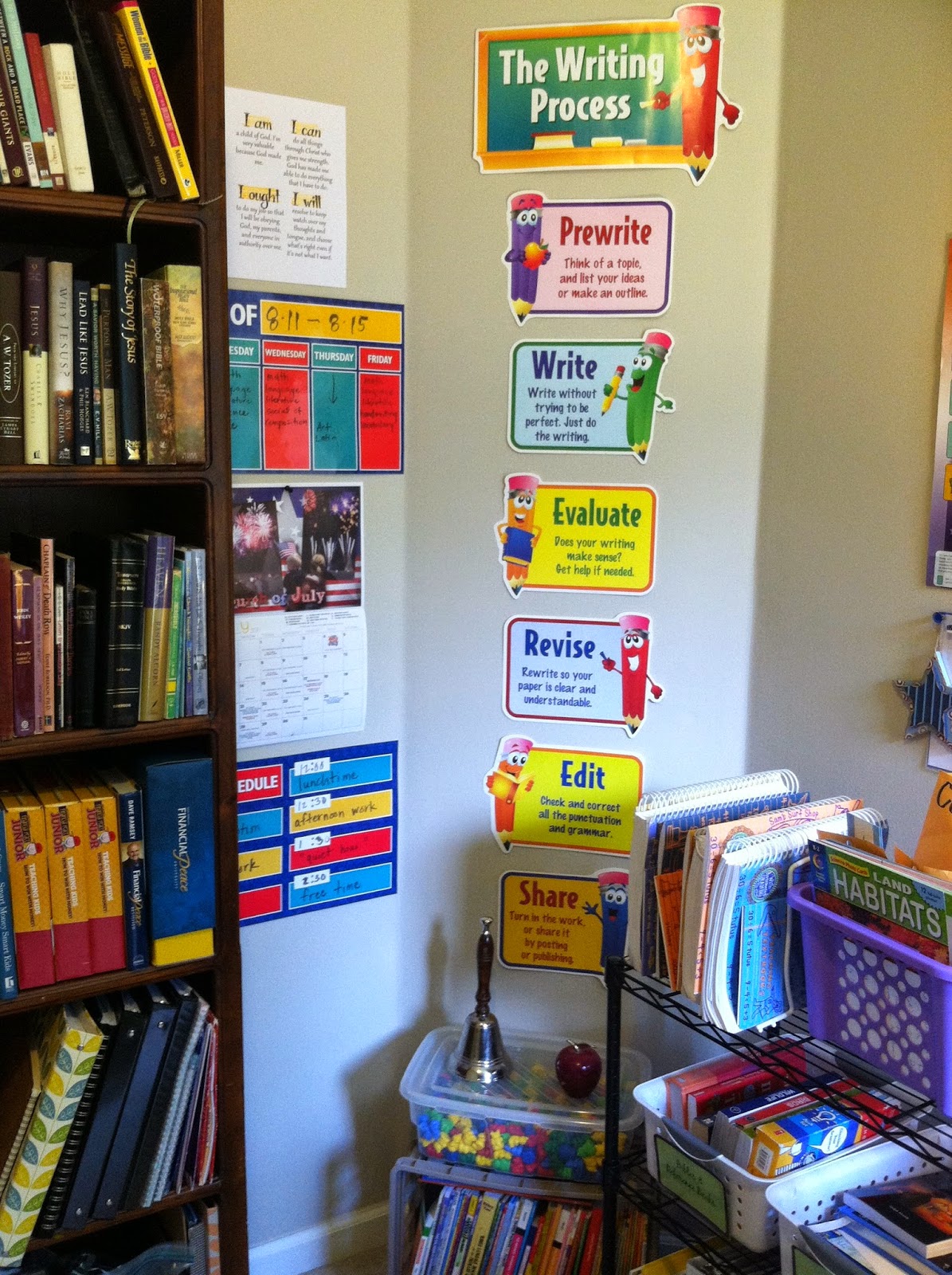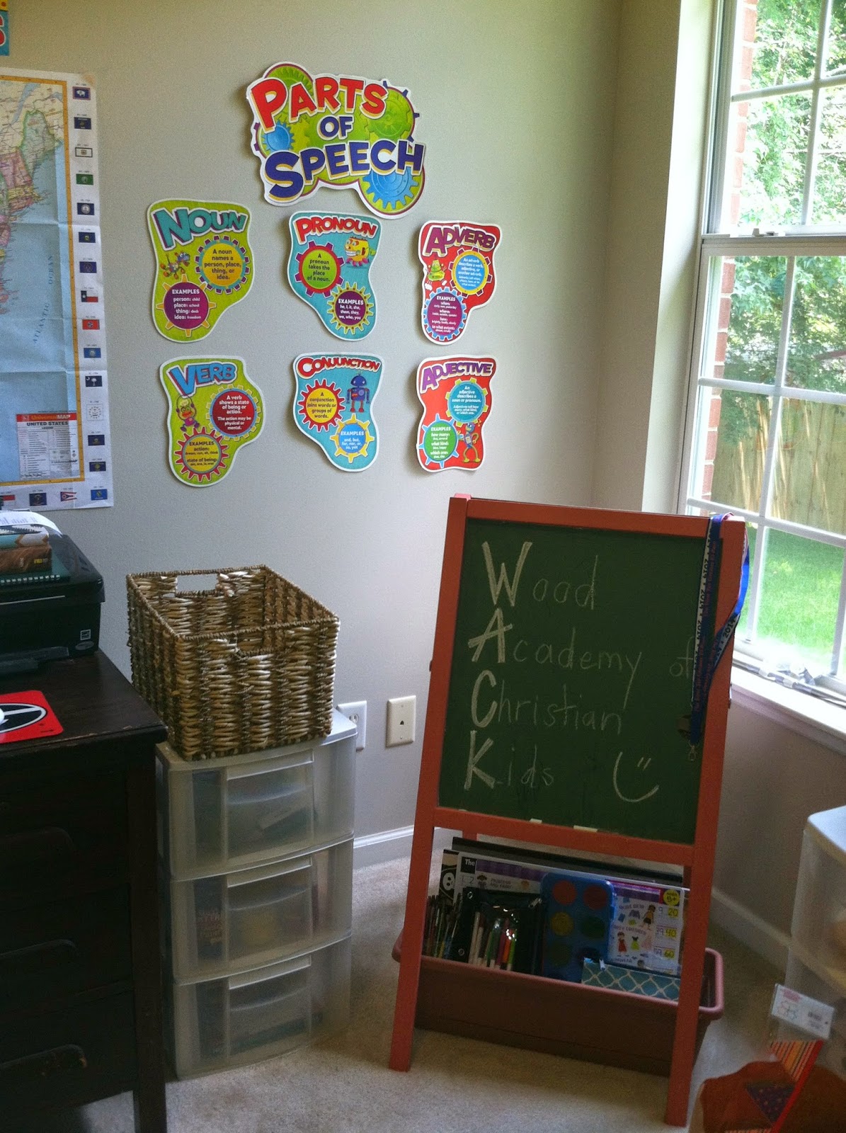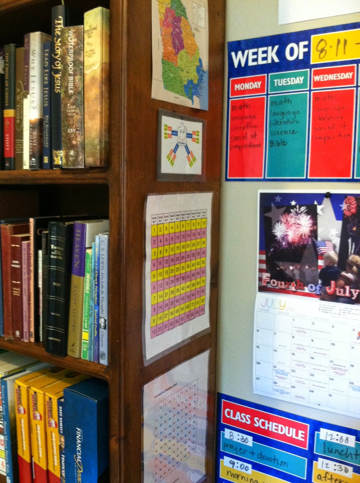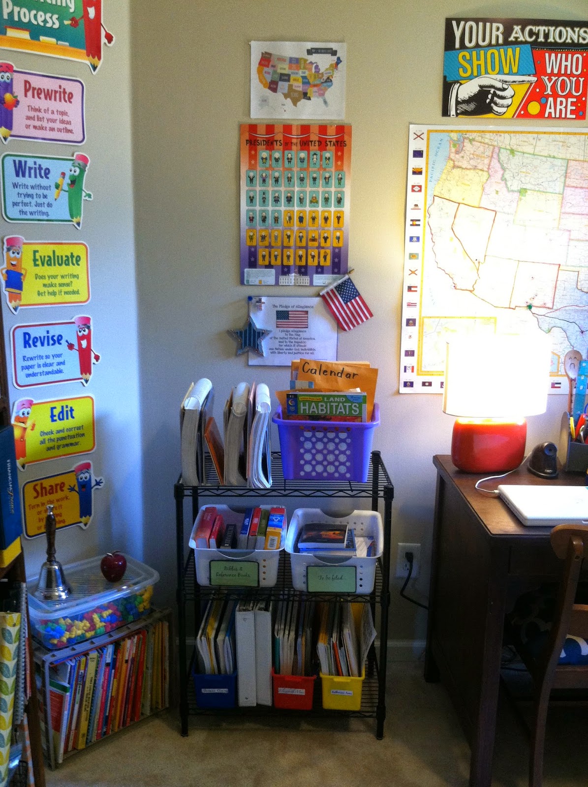 Anyway, I try to keep things pretty organized and we always put away our things at the end of every school day. I just can’t function with piles and messes and junk. I’m the headmaster so I can do things the way I want =)