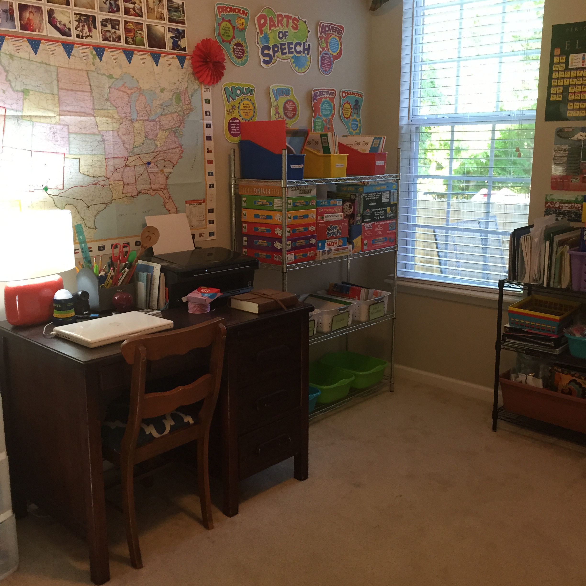 In our school room, we get rid of consumable workbooks, used folders, and old work. I know some people keep those items, but not me. I have “special” boxes for each of the kids and I only keep extra, extra special items like awards certificates, programs, and meaningful artwork or writing samples.