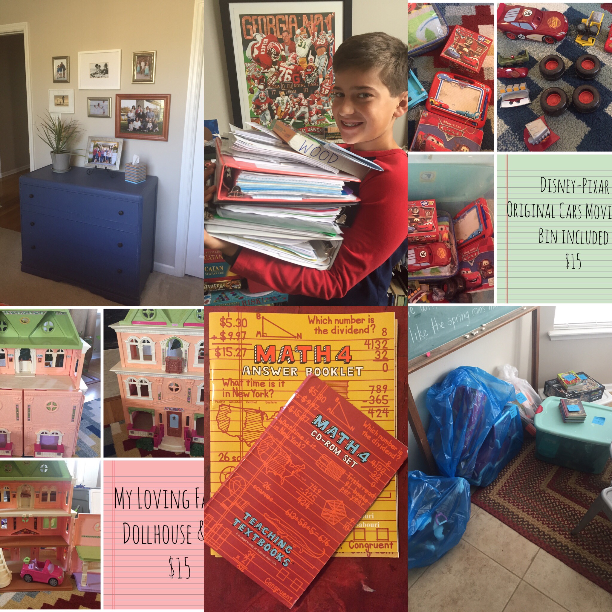 March has been nothing if not a month of PURGING! Our move is just around the corner. I have sold and donated and thrown away a lot of things. Furniture pieces that won’t make the move, kids’ toys, and homeschool stuff; it has all been organized and put in order.