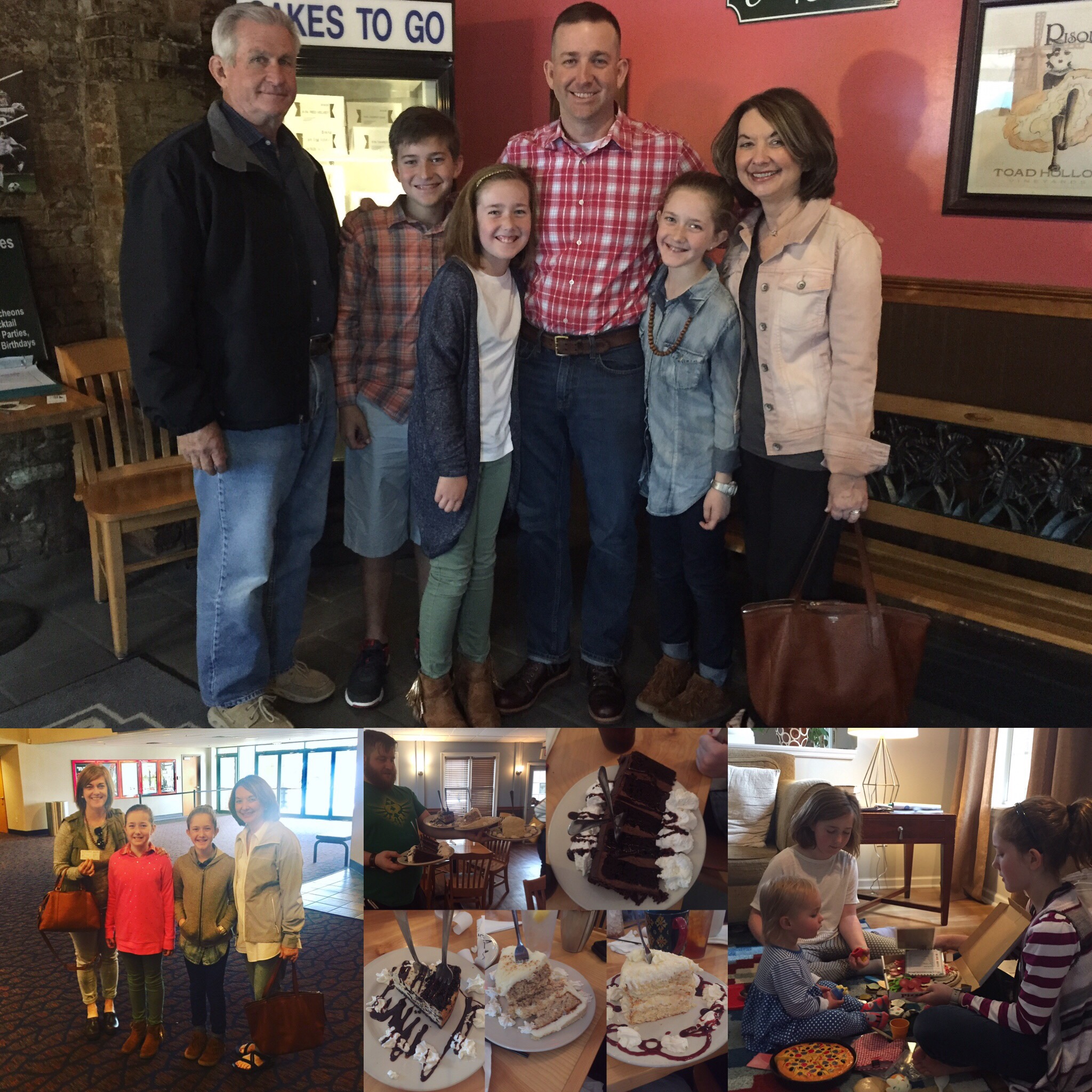 Probably the biggest celebration of March was Ryan turning 40!!! We celebrated all weekend long! His folks came into town on Thursday and we had a fun dinner out at Bollwevil. =) Becky, Mae, Kate, and I went to see Beauty and the Beast. On Saturday, Ryan’s brother and his family came for the day and we celebrated again. Sunday, Ron and Becky joined us for chapel before they went back to TN. And Monday night, the kids and I took Ryan out again for his actual birthday.