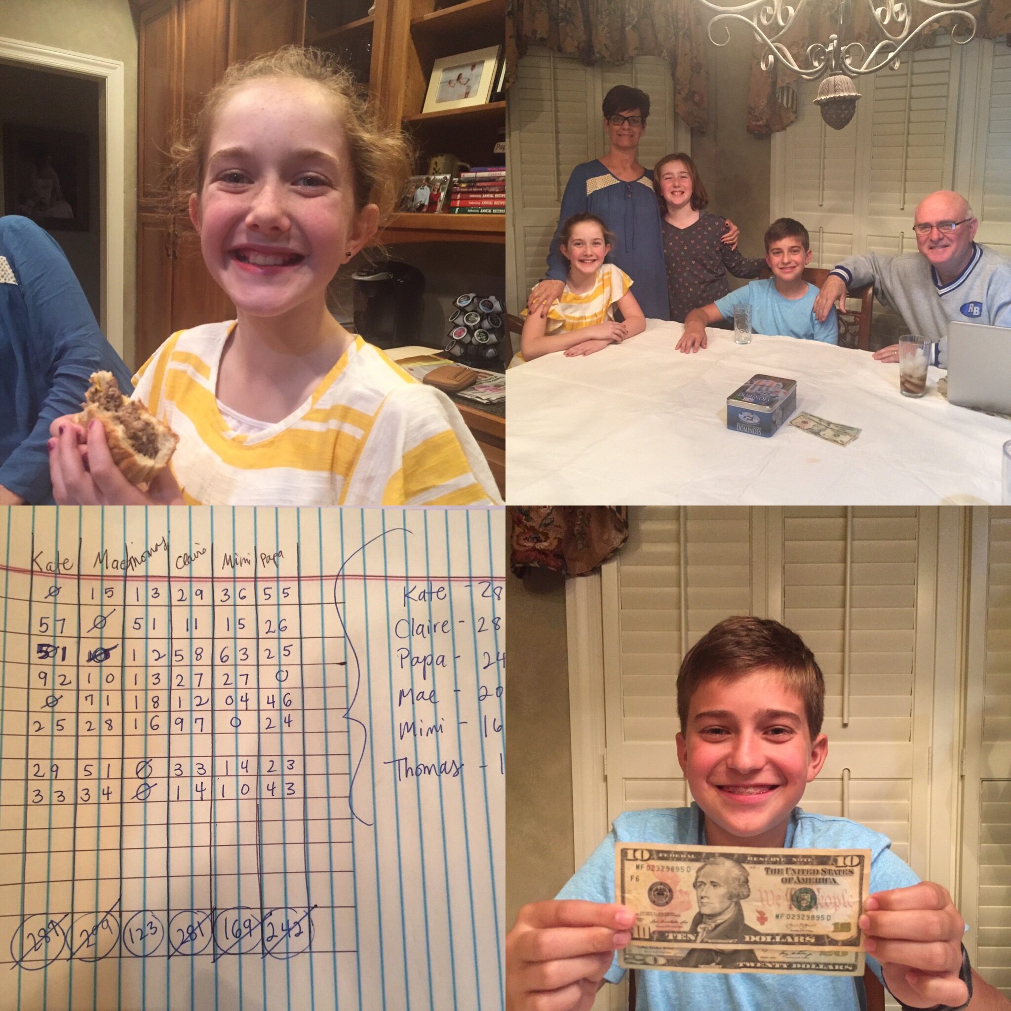 We were under tornado watch while there so we hunkered down, got some Armandos and played a fun round of Mexican Train. We wagered a little $$ this time and Thomas came out the victor.