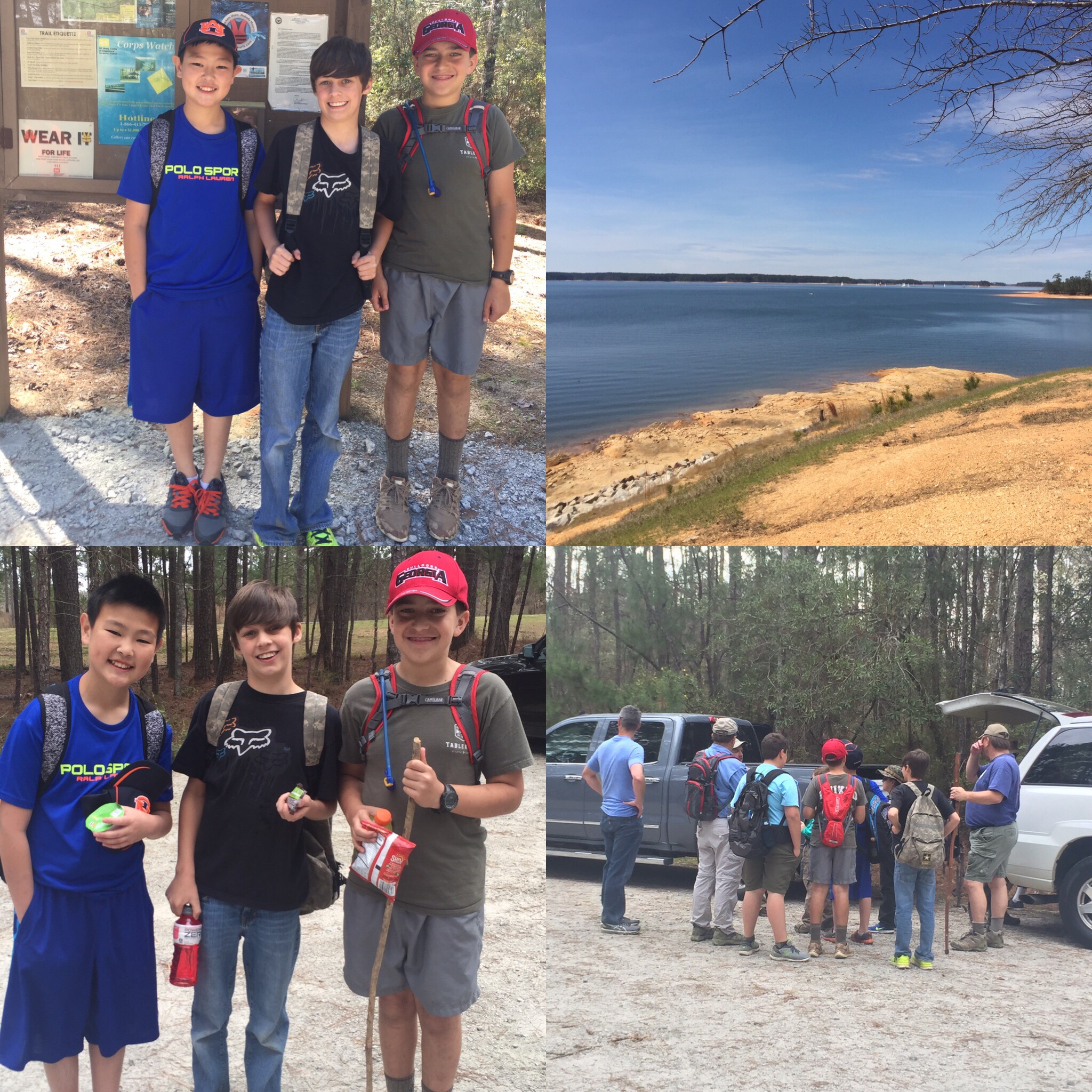 Thomas’s Trail Life group is working up to their long, strenuous hike at summer camp. In March they completed a four-mile trail hike. Next month they will do a six-miler. It was a beautiful day out at the lake and on the Bartram Trail.