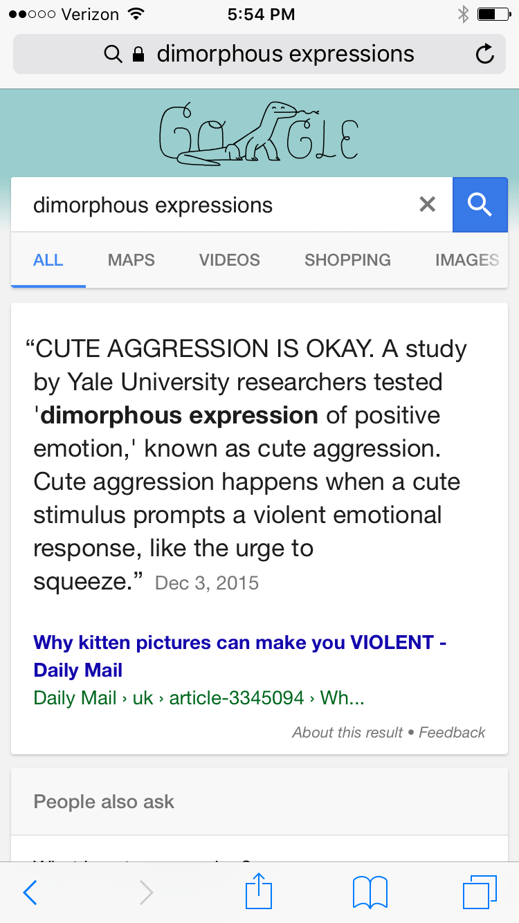 The kids and I discovered a WONDERFUL podcast called Brains ON! which is put on by Minnesota Public Radio. There are some amazing, funny, scientific episodes that are deeply thoughtful, well-researched, but highly entertaining for kids and adults who love science. We pretty much listen anytime we pile into the car. We learned about the phenomenon of Dimorphous Expressions or Cute Aggression. Super interesting.