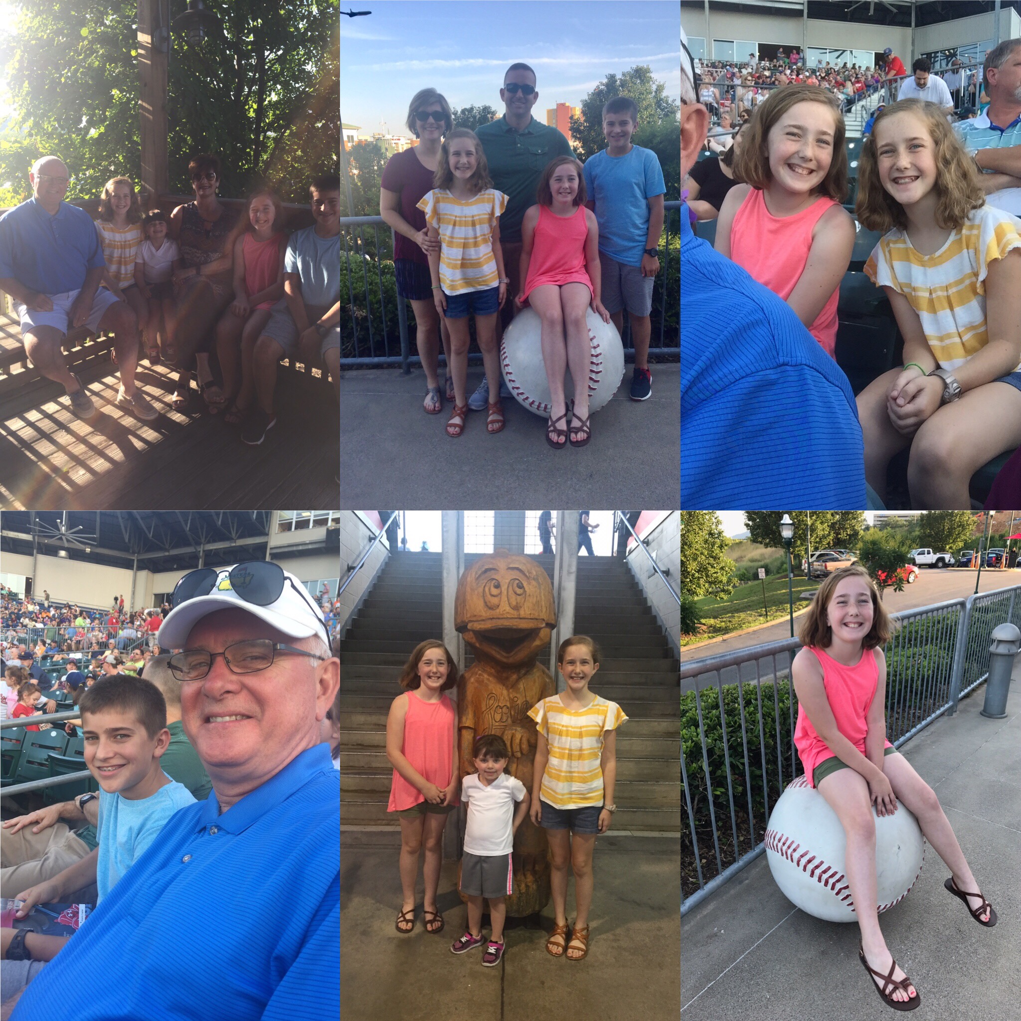 Mom and Dad treated us to a night out on the town. Dinner at FoodWorks and a Lookouts game. What fun! (Long time Lookouts fans!)