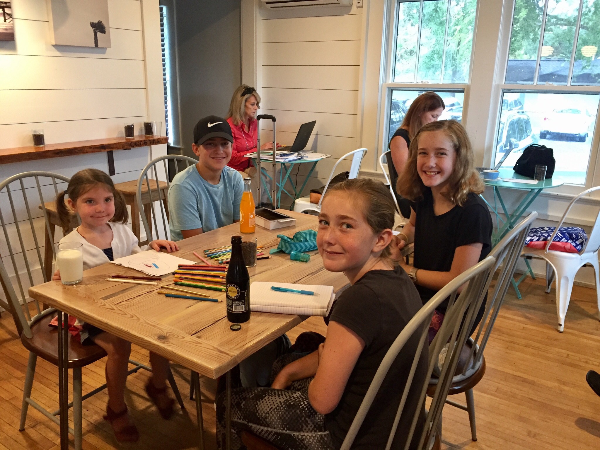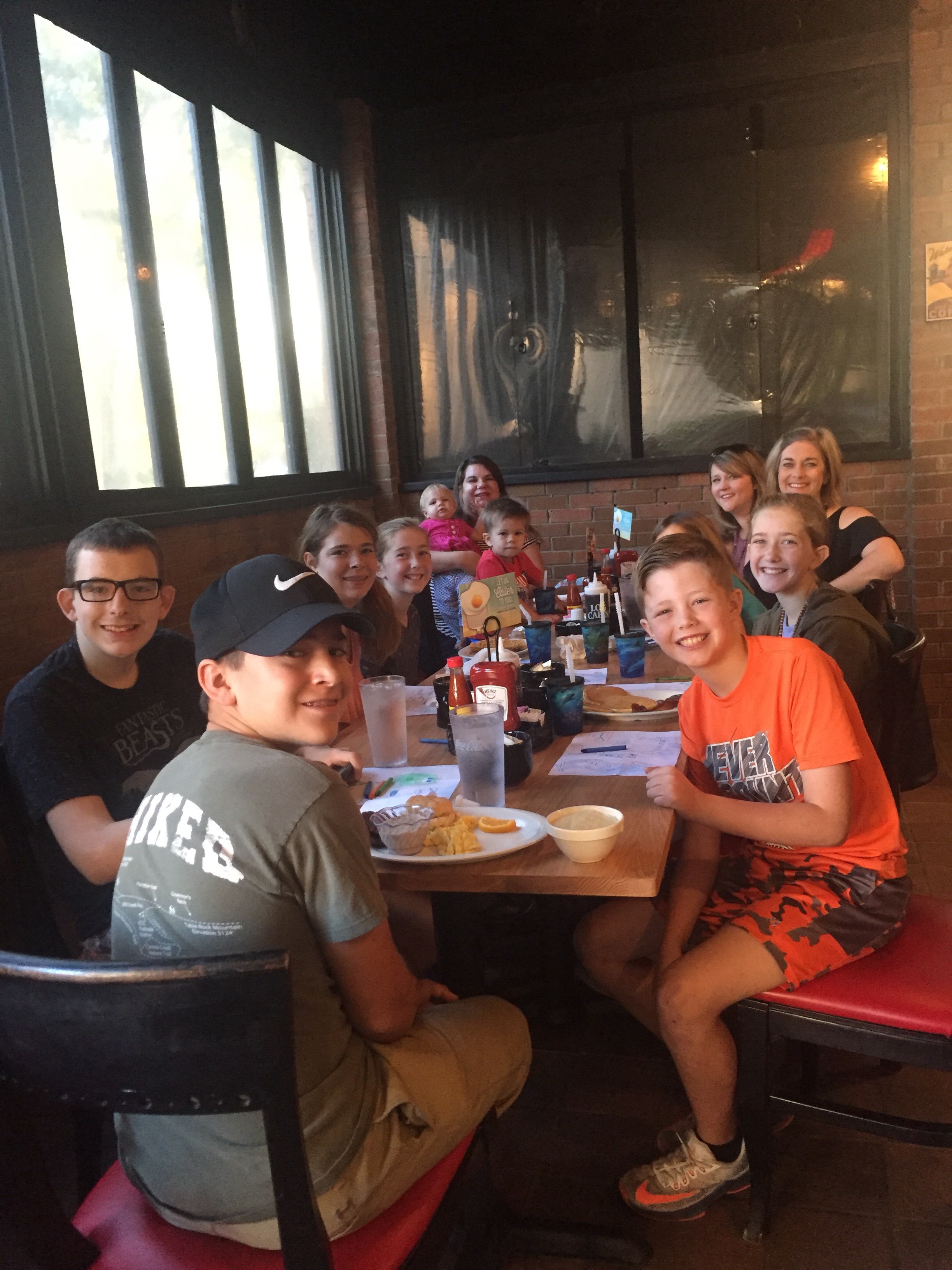 The kids and I met up with our neighbors on either side who also homeschool. We all went out to breakfast at Eggs Up Grill at 7:30 one morning. What fun!