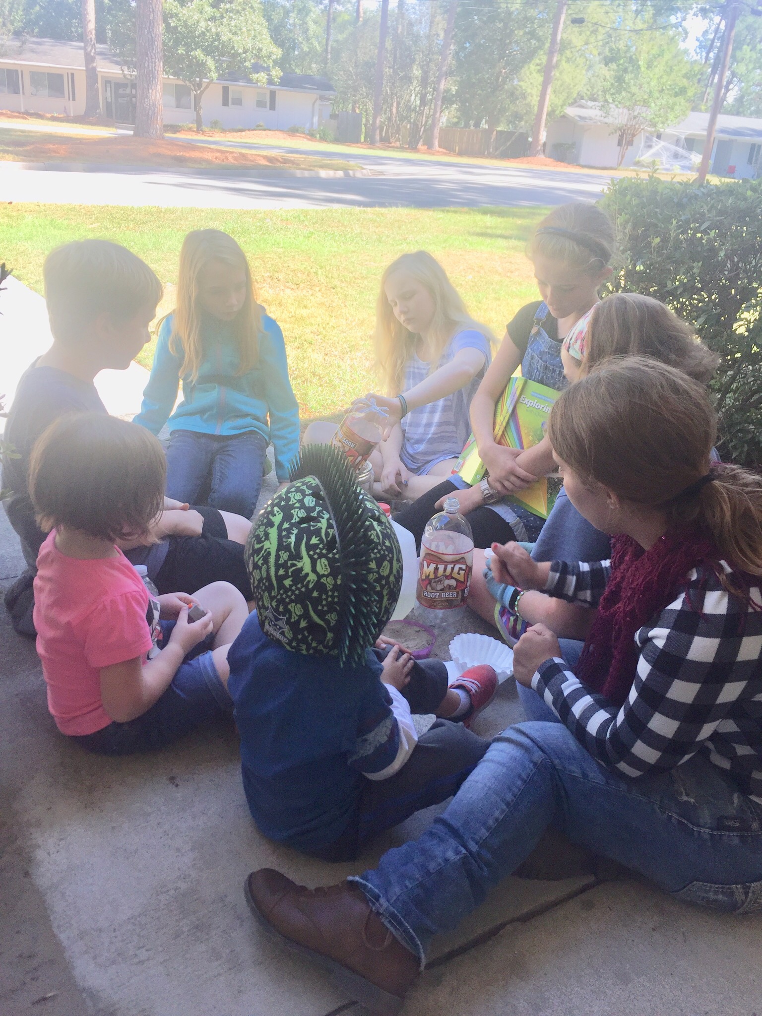 The weather has been great and it was our turn to host the science experiment with the Yates. I had to fetch half a gallon of lake water and then half of the neighborhood kids joined in on the water filtration project. =)