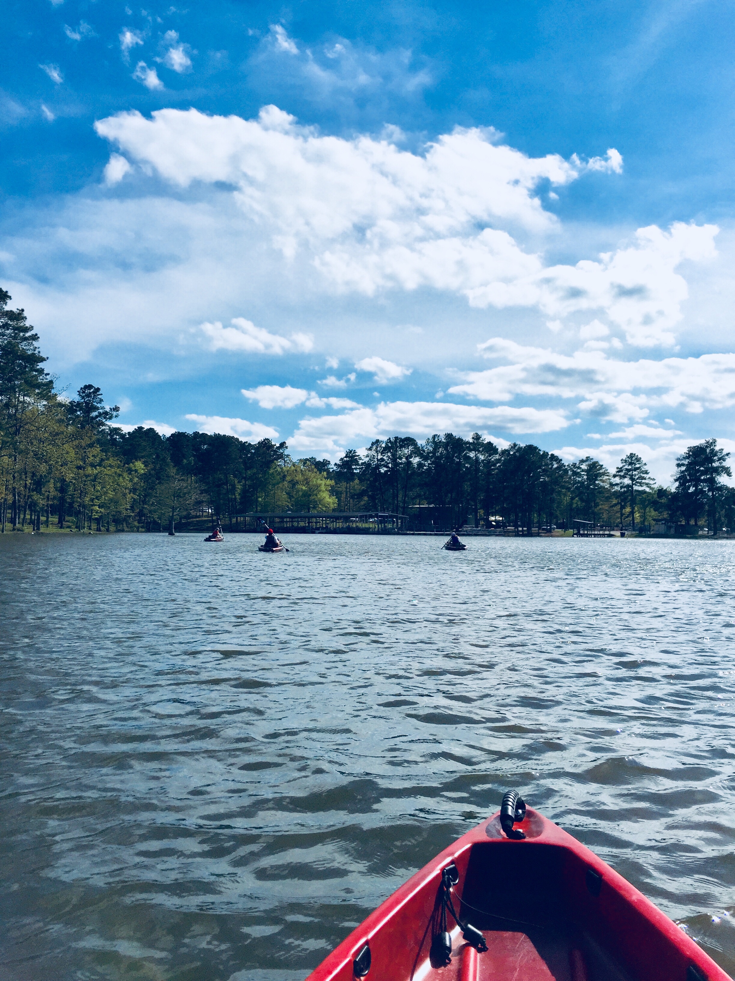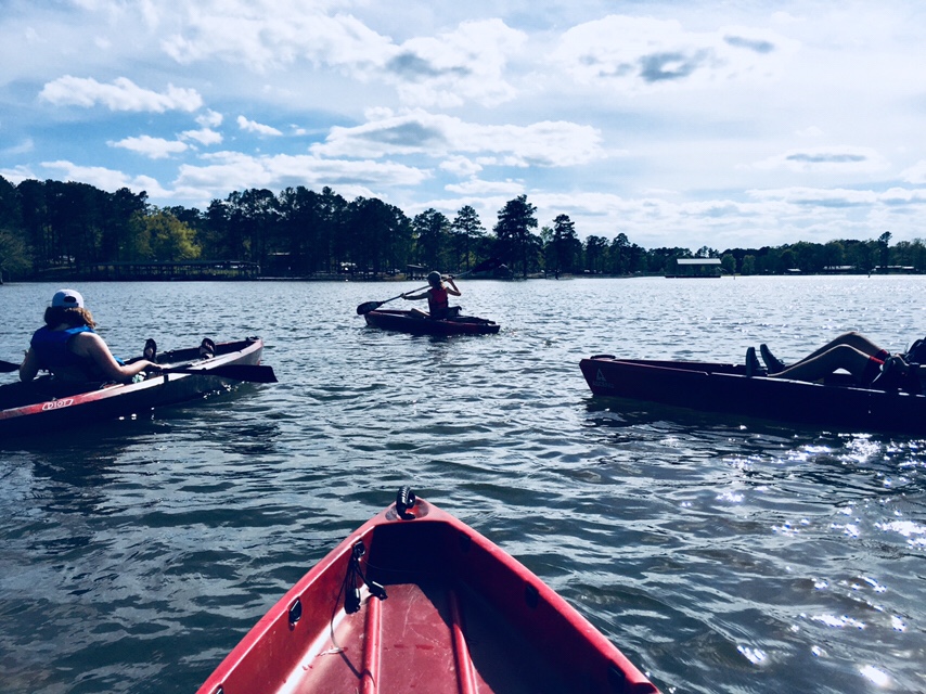 Everyone got all suited up with life vests, paddles, kayak seats, and kayaks and we spent some time just meandering around the lake.