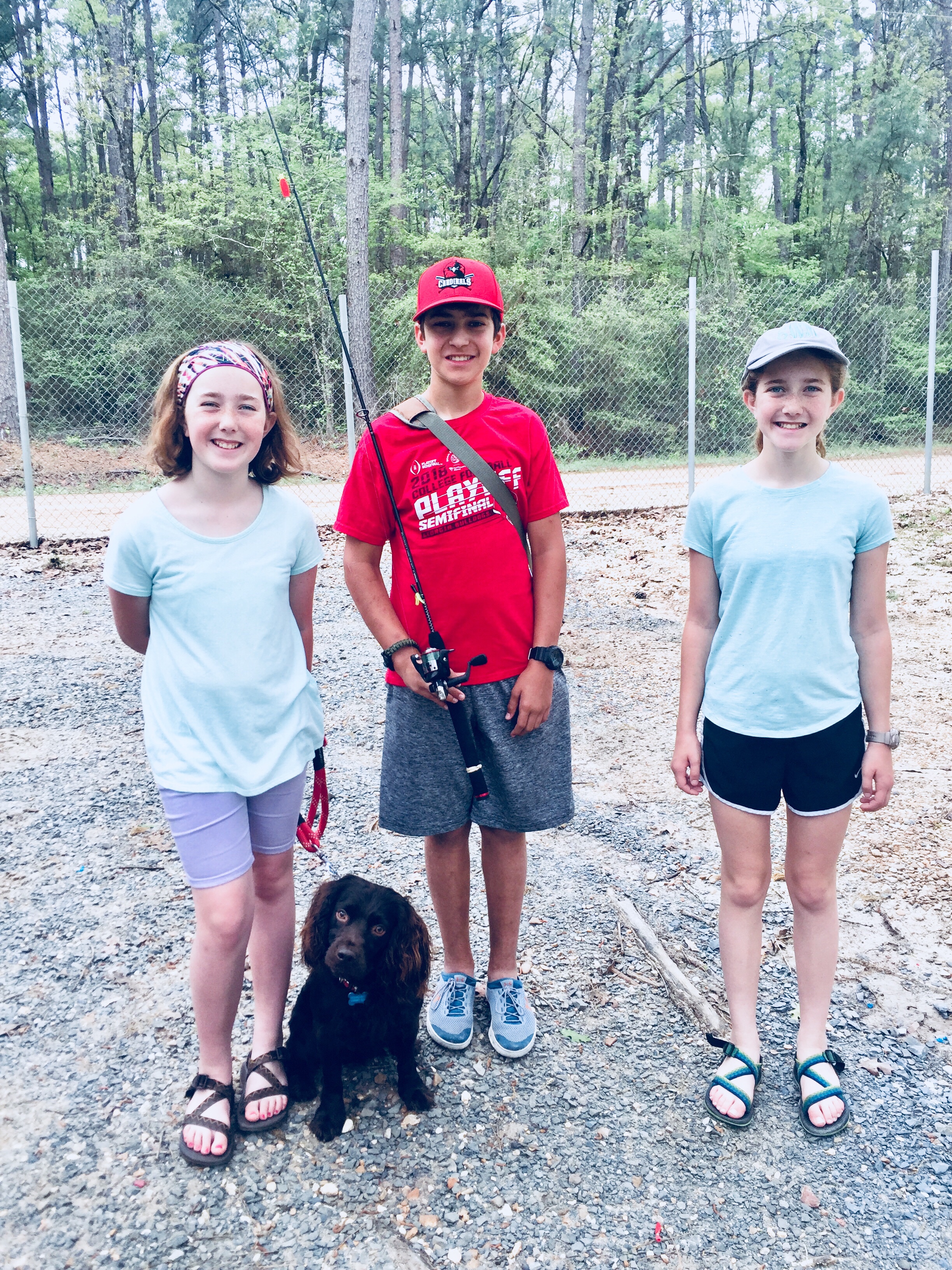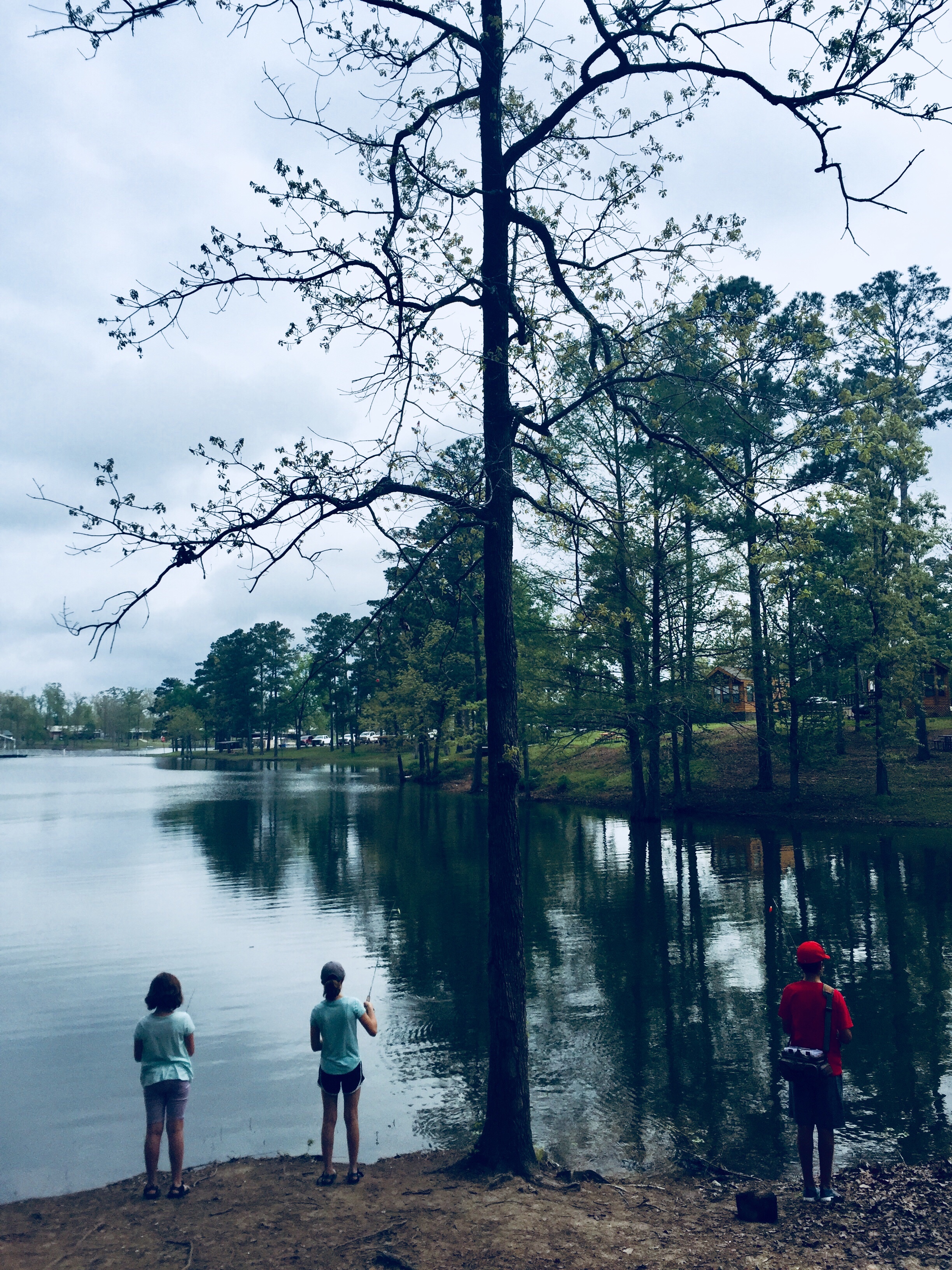 Our kids fish a lot at Ryan’s parents’ house: we were laughing because the fish don’t bite quite like they do at Granddaddy’s stocked pond–where he also feeds the fish just before the kids get their rods and reels ready. (LOLOLOLOLOL)