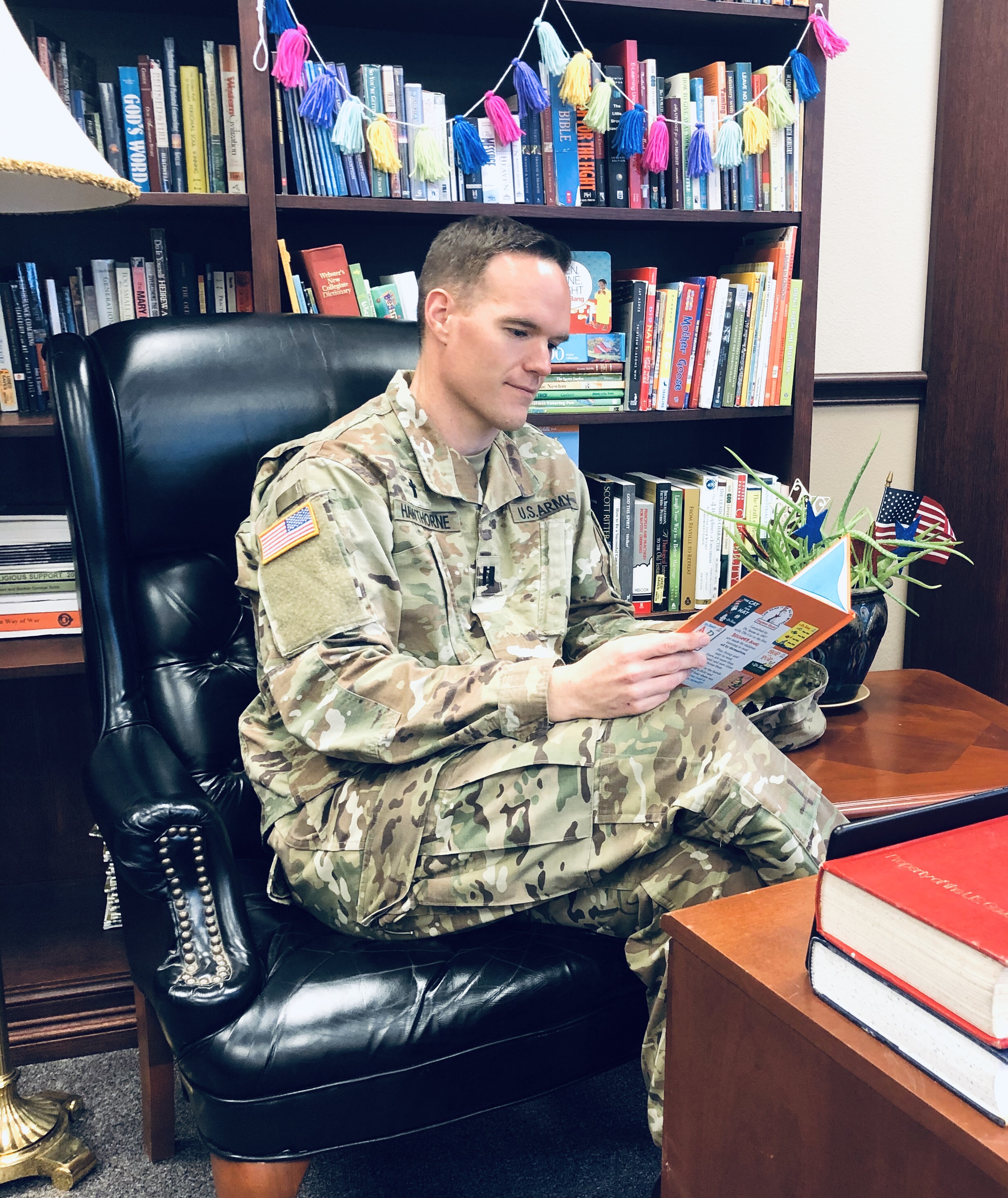 While not deployed, my husband, Ryan’s job as a chaplain and OCT (observer, coach, trainer) at the Joint Readiness Training Center and Operations Group has him away from home with rigorous hours out in “The Box” approximately 24 out of 30 days per month during rotational training. My own kids have since outgrown getting tucked in with a bedtime story. However, many of our OPS Group families have young children who routinely miss out on having their service member parent home in the evenings due to crazy hours and what we all not-so-affectionately call “Box Life.” When I shared this scenario with Jessica, she offered to connect me to Molly Haskin–the Director of Army and Air Force Programming, who she claimed would be thrilled to help me get a story recording event mobilized on Fort Polk. This networking and making of professional connections bolstered my interest in my reporting even further.