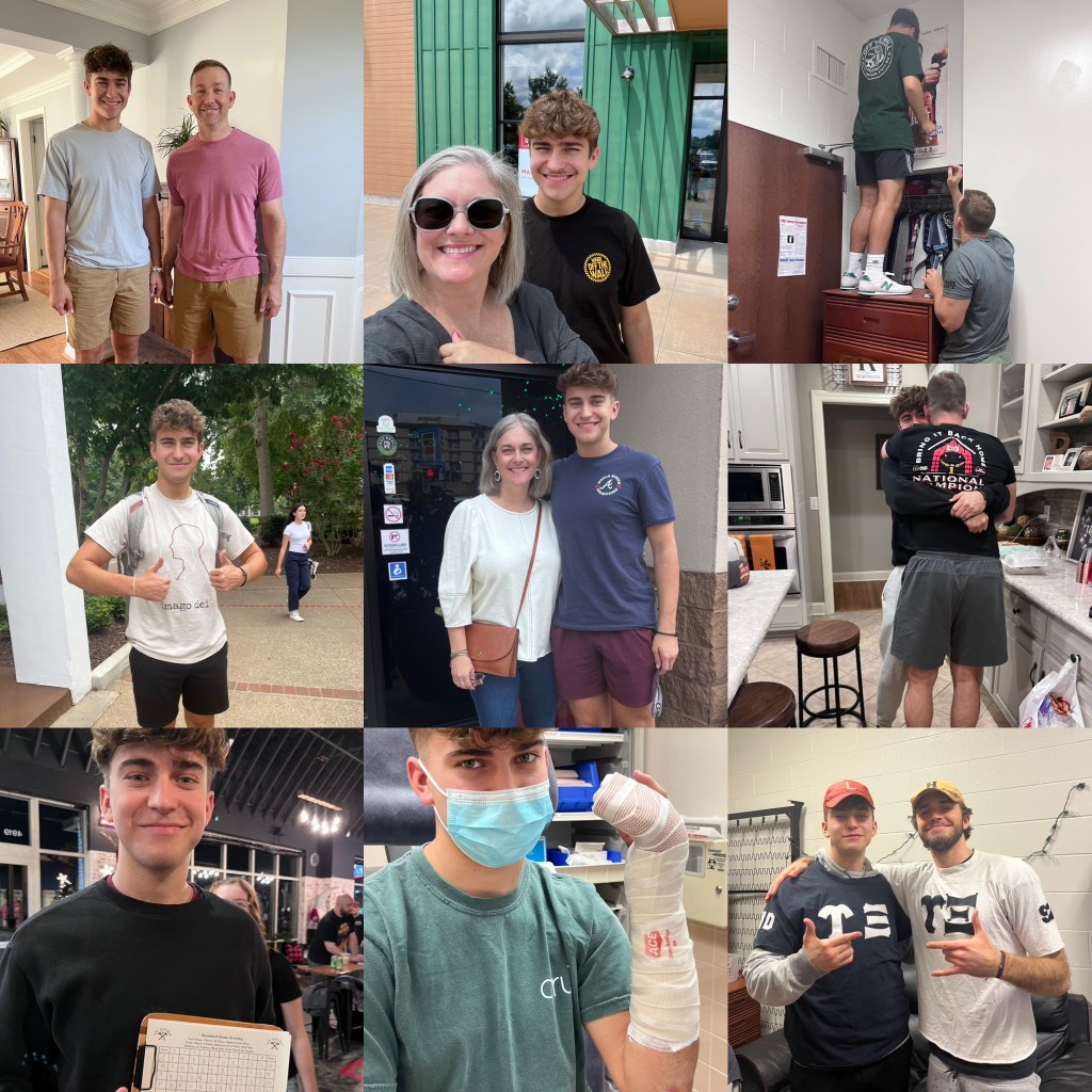 As for Thomas, we all learned how to navigate life from afar. We are super proud with how he just jumped right into college life at Lee. He has squeezed every ounce of fun out of his first two years there. He had his first major broken bone, had a scary car accident that thankfully resulted in no injuries, and he joined a service club at Lee, Upsilon Xi, the same one my dad was part of back in the 1970s.